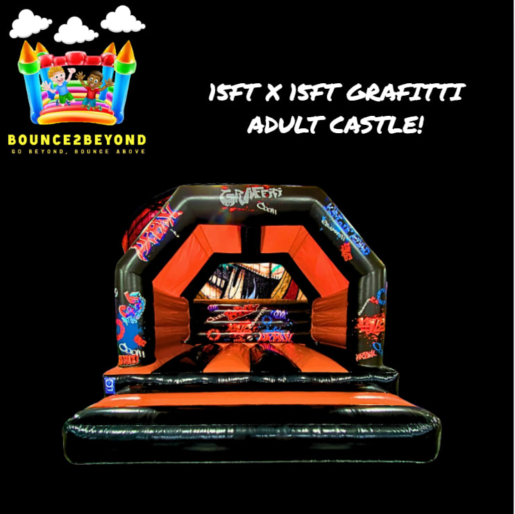 Make your next event the talk of the town with our unique 15 x 15 orange and black graffiti castle. It’s the perfect addition for energetic fun and photo-worthy moments. Contact us today to check availability, ask questions, and secure your booking. Let us help you create unforgettable memories in Bedfordshire, Cambridgeshire, Hertfordshire, and surrounding areas!