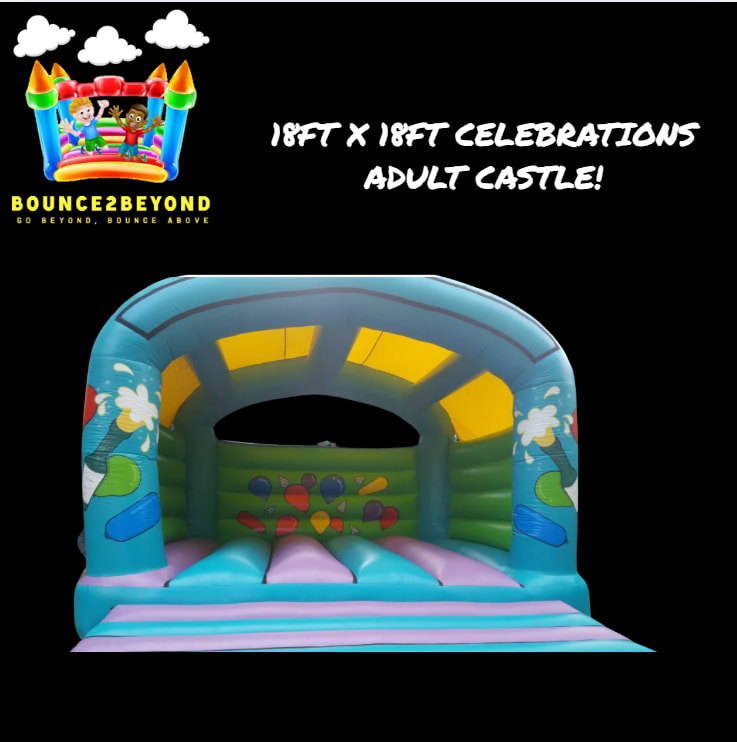 Turn your next gathering into a magical event with our spectacular 18 x 18 celebrations castle! Perfect for birthdays, weddings, anniversaries, corporate parties, and more, this adult-sized bouncy castle is designed to bring endless fun and laughter to any event. With its roomy 18ft x 18ft platform, it offers ample space for guests of all ages to bounce, play, and celebrate together. Let your guests experience the joy of childhood again while adding a unique touch to your celebration!