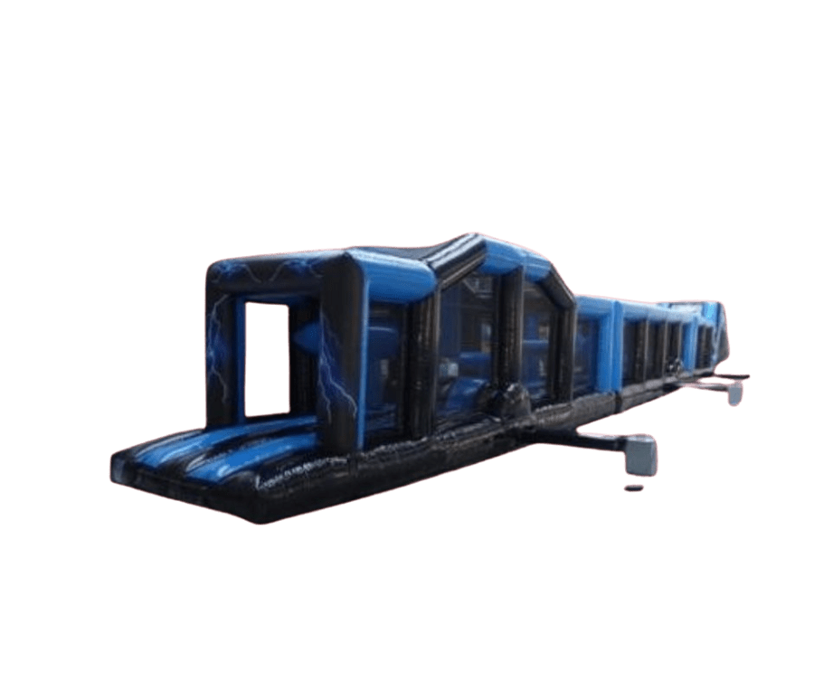Whether you're hosting a backyard birthday bash, a school field day, a church carnival, or a company picnic, the 100ft blue and black obstacle course guarantees high-energy entertainment for kids, teens, and adults alike. Watch as guests race, laugh, and cheer their way through this epic challenge!