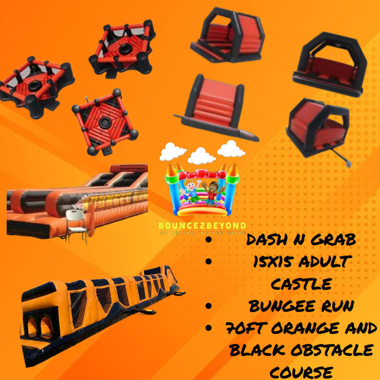 Elevate your next event with our action-packed ORANGE AND BLACK INFLATABLE PACKAGE . Perfect for birthday parties, corporate events, school functions, and family gatherings, this all-in-one rental brings excitement and energy to any occasion. Designed to accommodate both kids and adults, the ORANGE AND BLACK PACKAGE guarantees hours of laughter, friendly competition, and unforgettable memories for everyone.